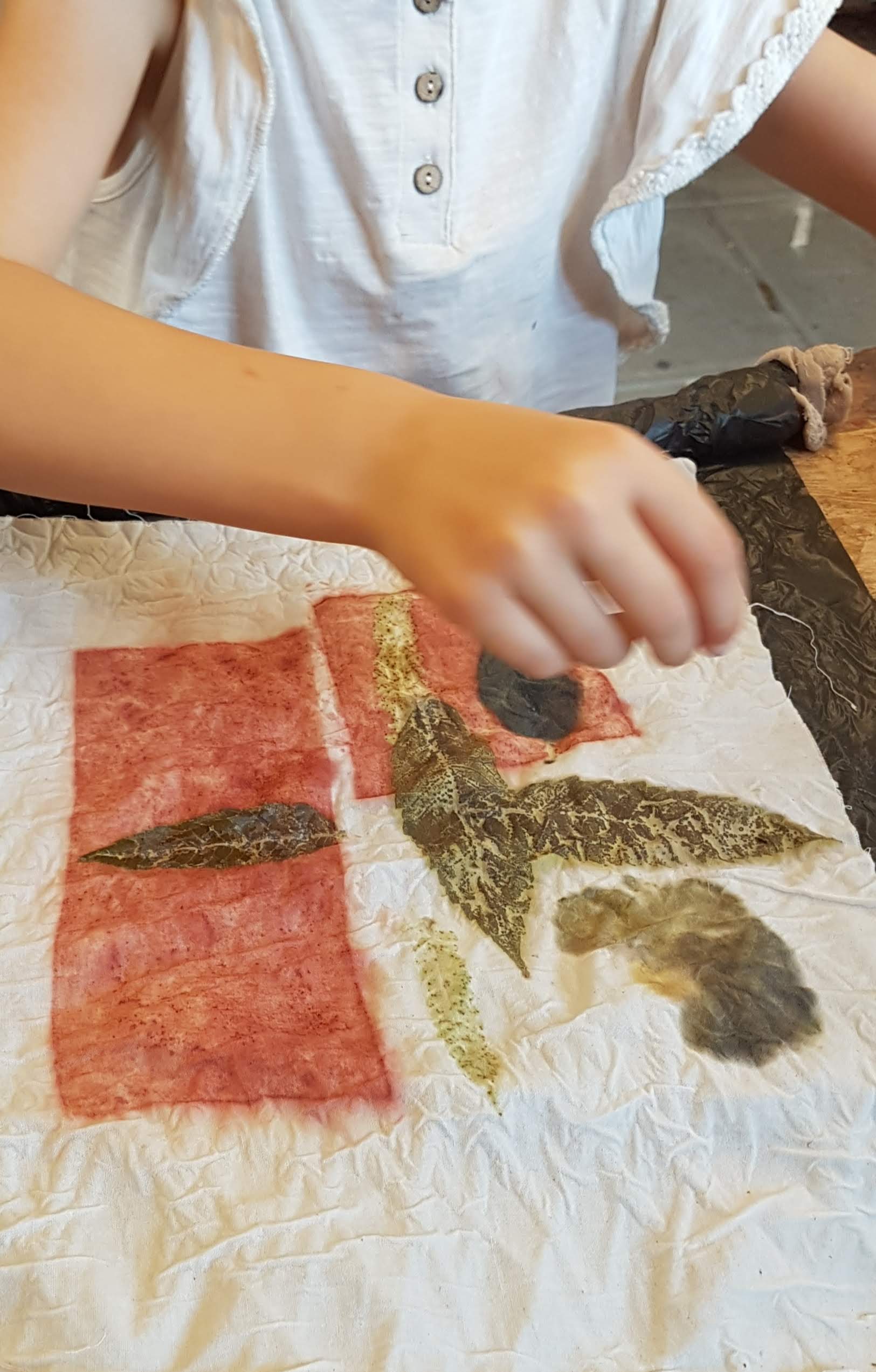 botanisch printen. Bij deze techniek, ook eco-print genoemd, wordt het sap van bladeren